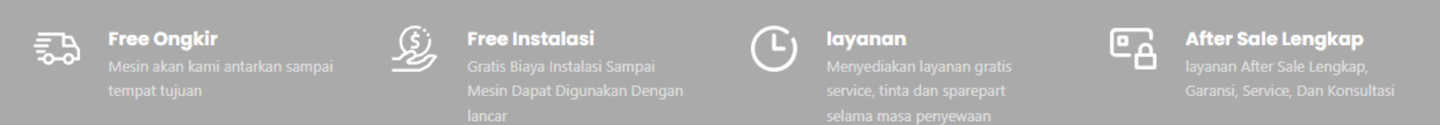 Kami siap memberikan mesin yang tepat sesuai dengan kebutuhan Customer kami, Teknisi kami sangat berpengalaman dan handal dalam mengatasi keluhan Customer karena Teknisi kami adalah teknisi Yang berpengalaman SERTA RESPONSIF dan kami didik secara berkala Sesuai dengan perkembangan teknologi mesin